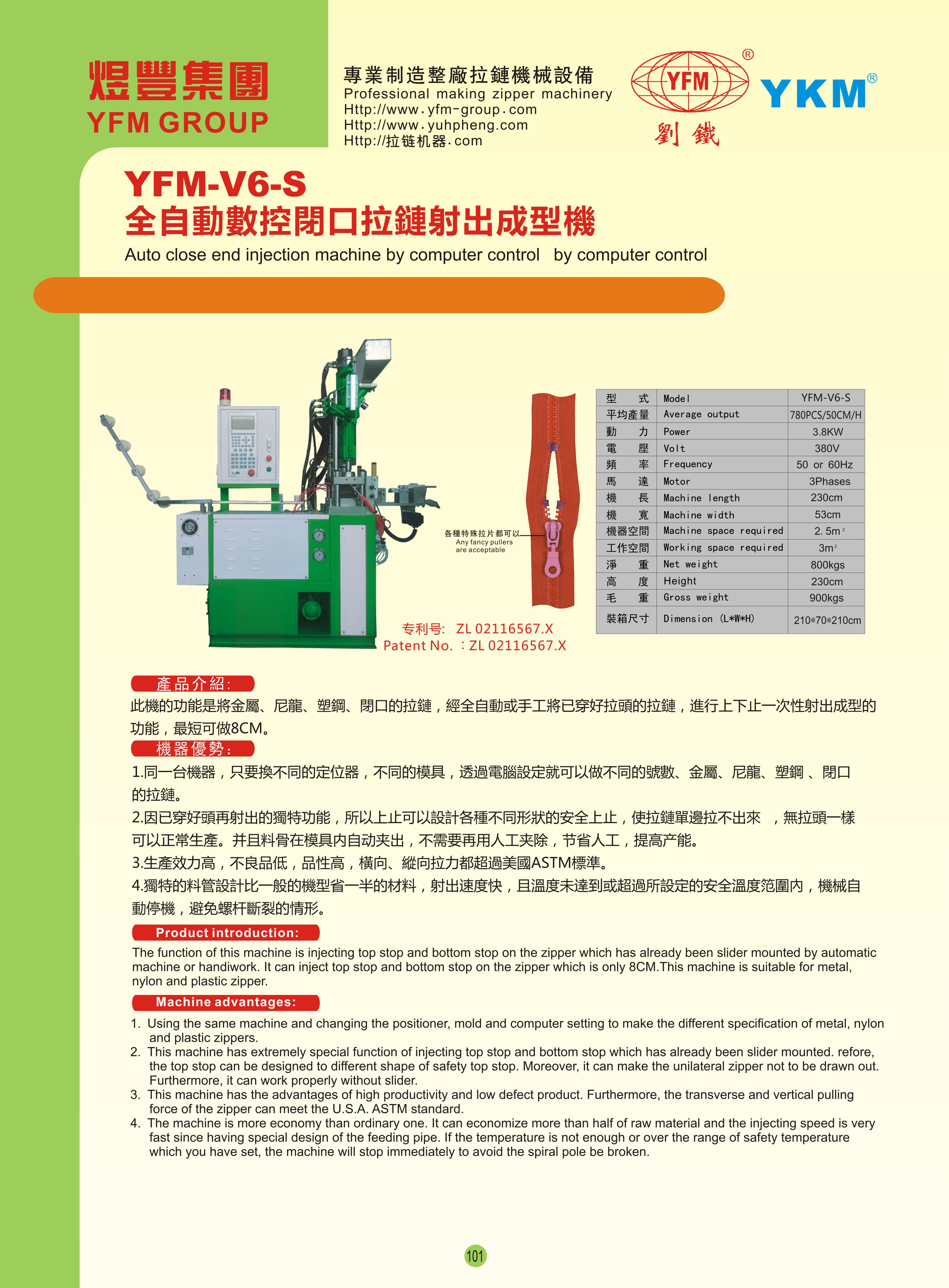 YFM-V6-S 全自動數(shù)控閉口拉鏈射出成型機(jī)