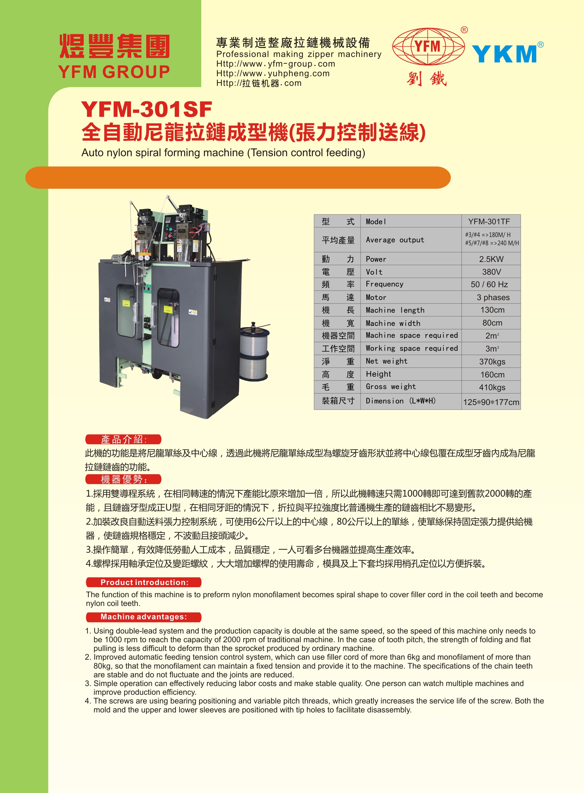 YFM-301SF 全自動(dòng)尼龍拉鏈成型機(jī)(張力控制送線)