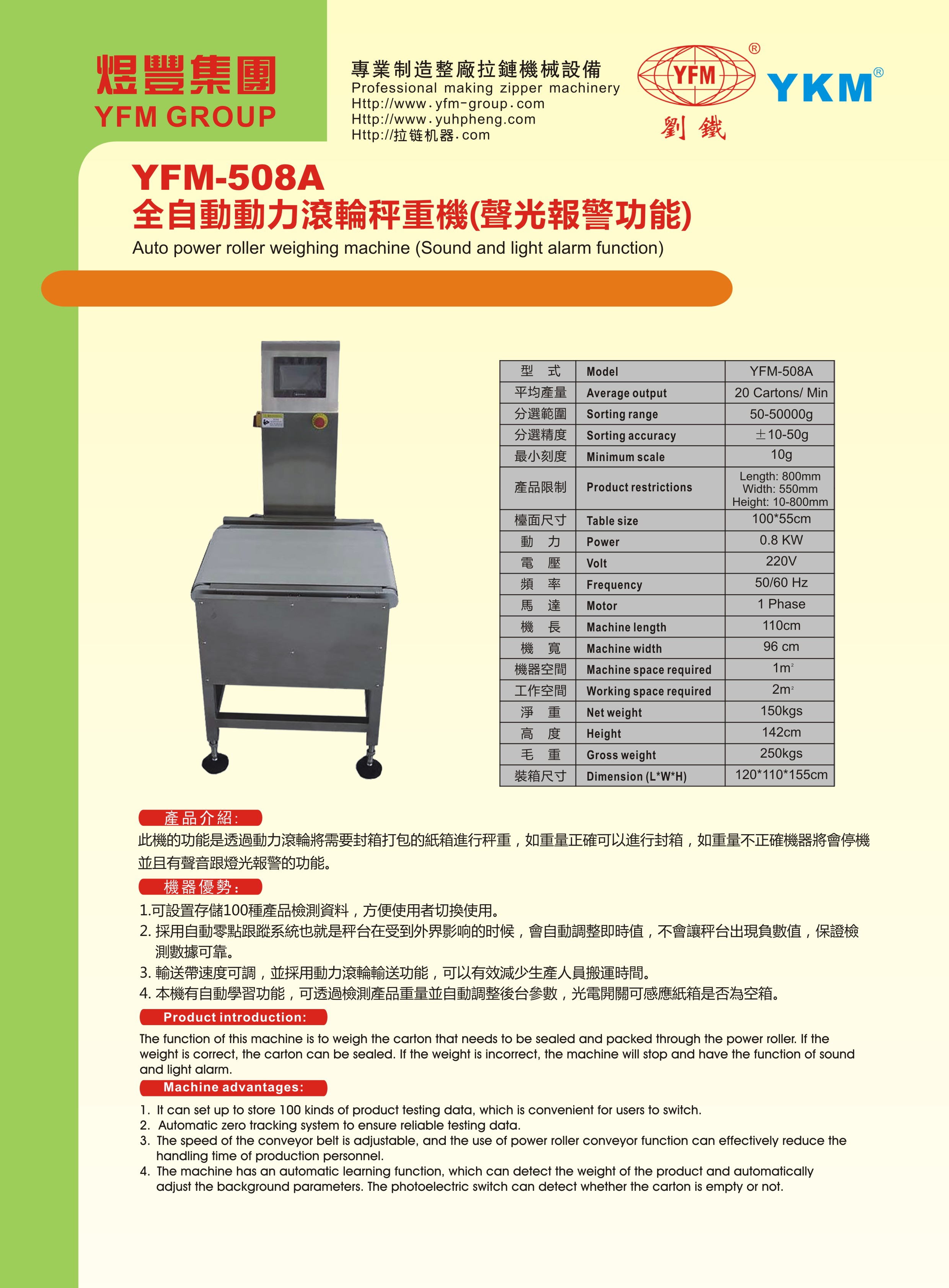YFM-508 全自動(dòng)動(dòng)力滾輪秤重機(jī)(自動(dòng)剔除功能)
