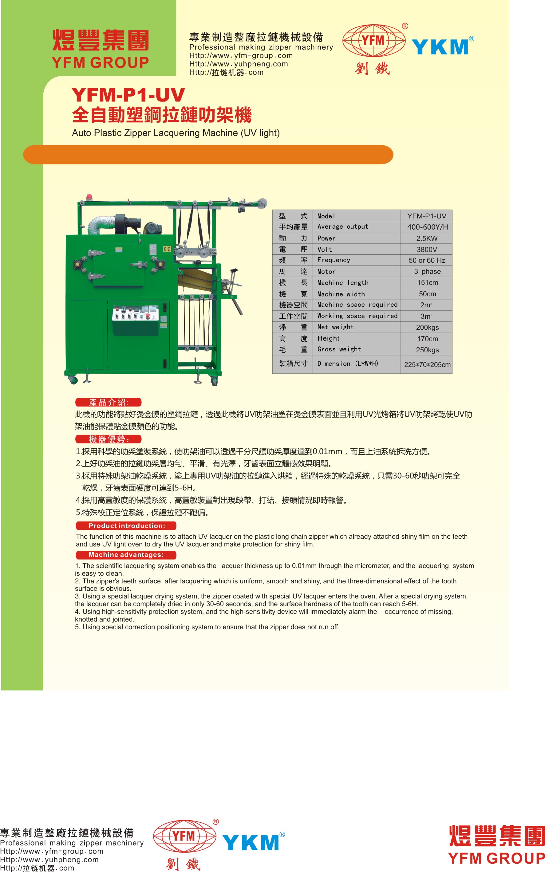 此機器的功能貼好燙金膜的塑鋼拉鏈,透過此機將UV叻架油塗在燙金膜表面並且利用UV光烤箱將UV叻架烤乾UV叻架油能保護(hù)貼金膜顏色的功能。