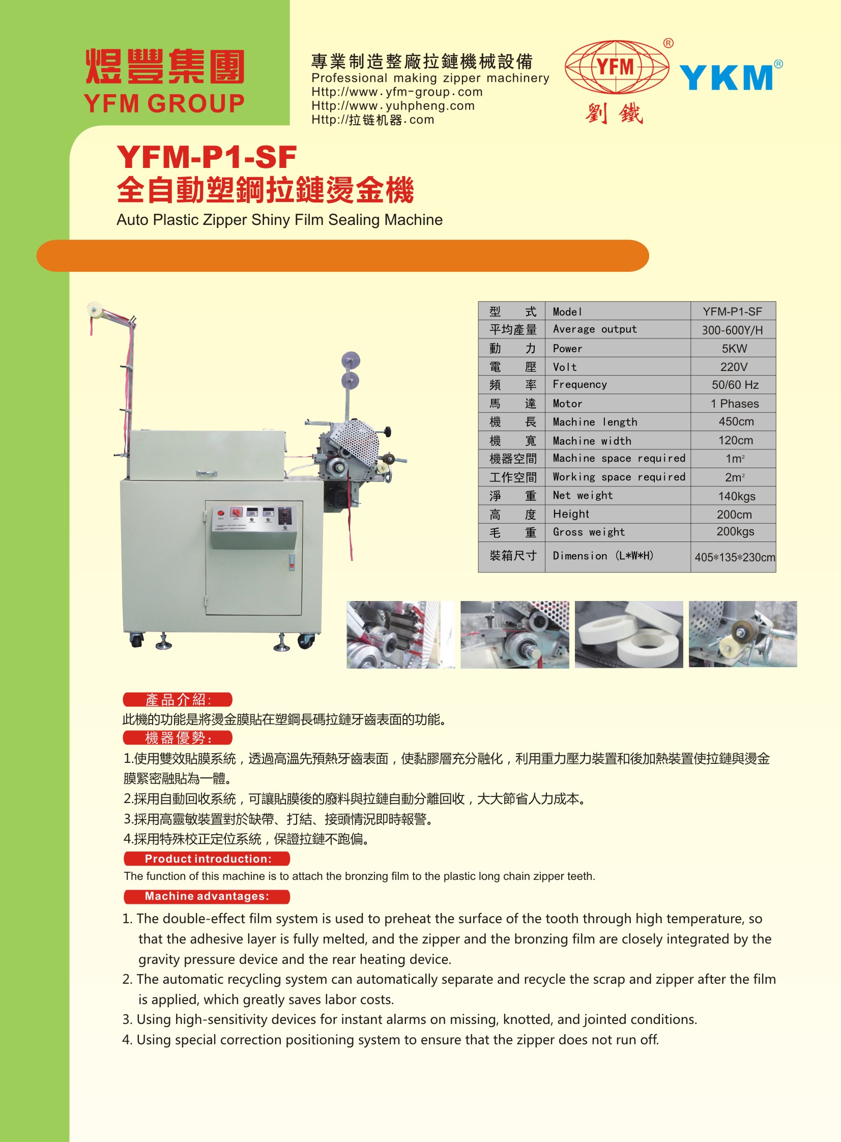 此機(jī)的功能是將燙金膜貼在塑鋼長碼拉鏈牙齒表面的功能。