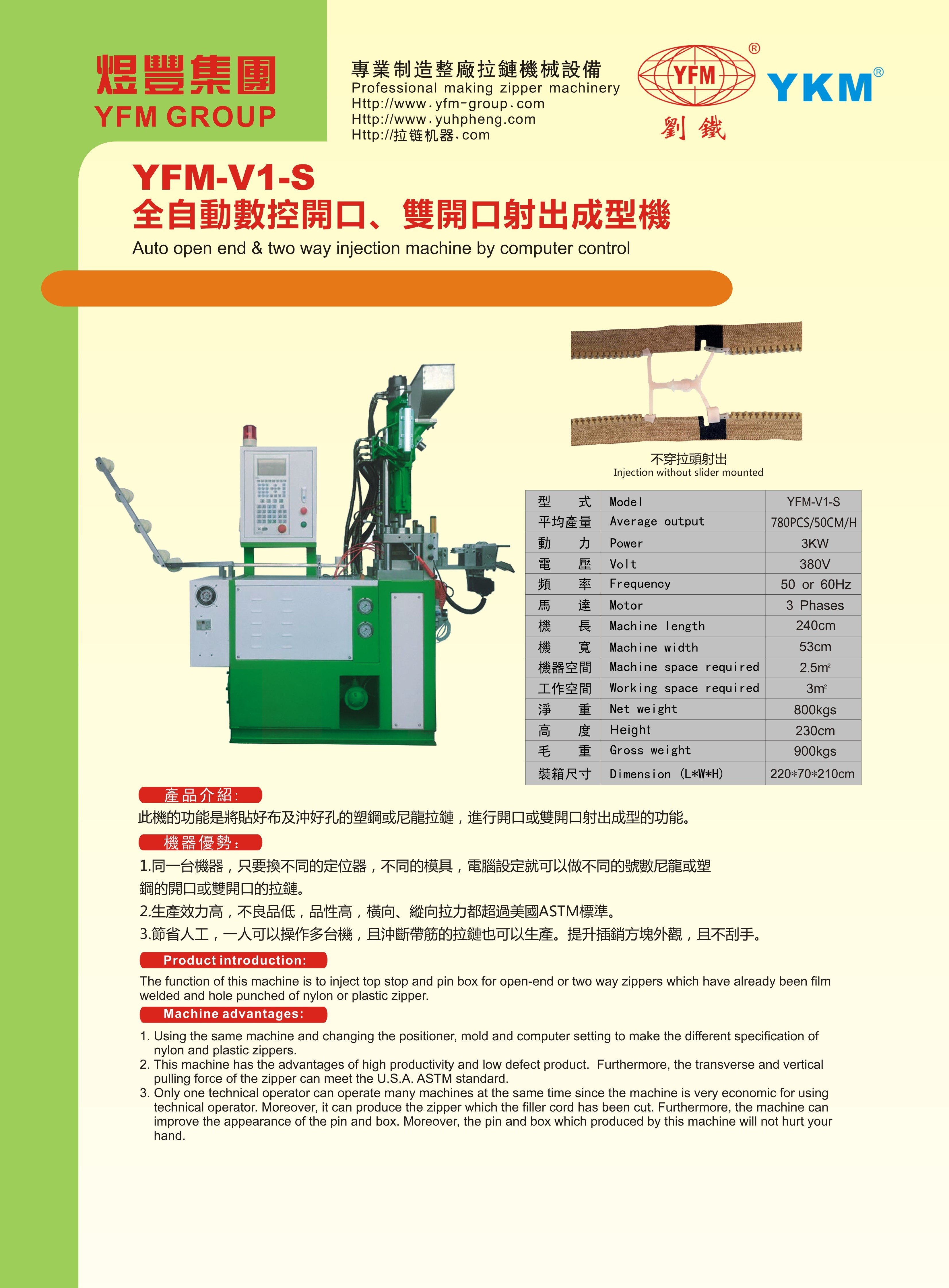 此機(jī)的功能是將貼好布及沖好孔的塑鋼或尼龍拉鏈,進(jìn)行開口或雙開口射出成型的功能。