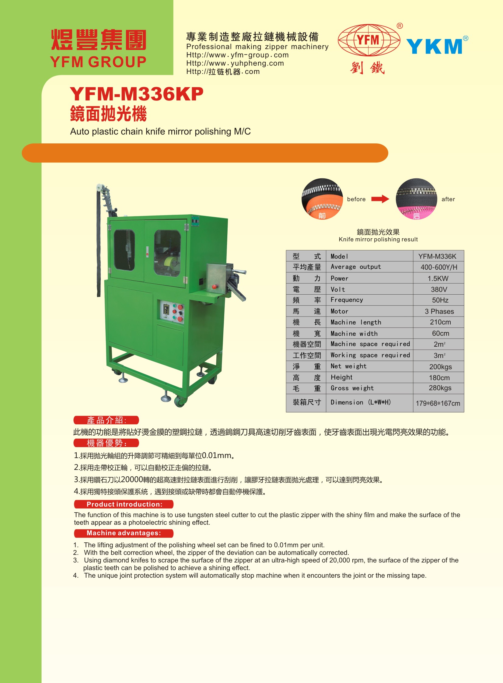 此機的功能是將貼好燙金膜的塑鋼拉鏈,透過鎢鋼刀具高速節(jié)削牙齒表面,使用齒表面出現(xiàn)光電閃亮效果的功能。