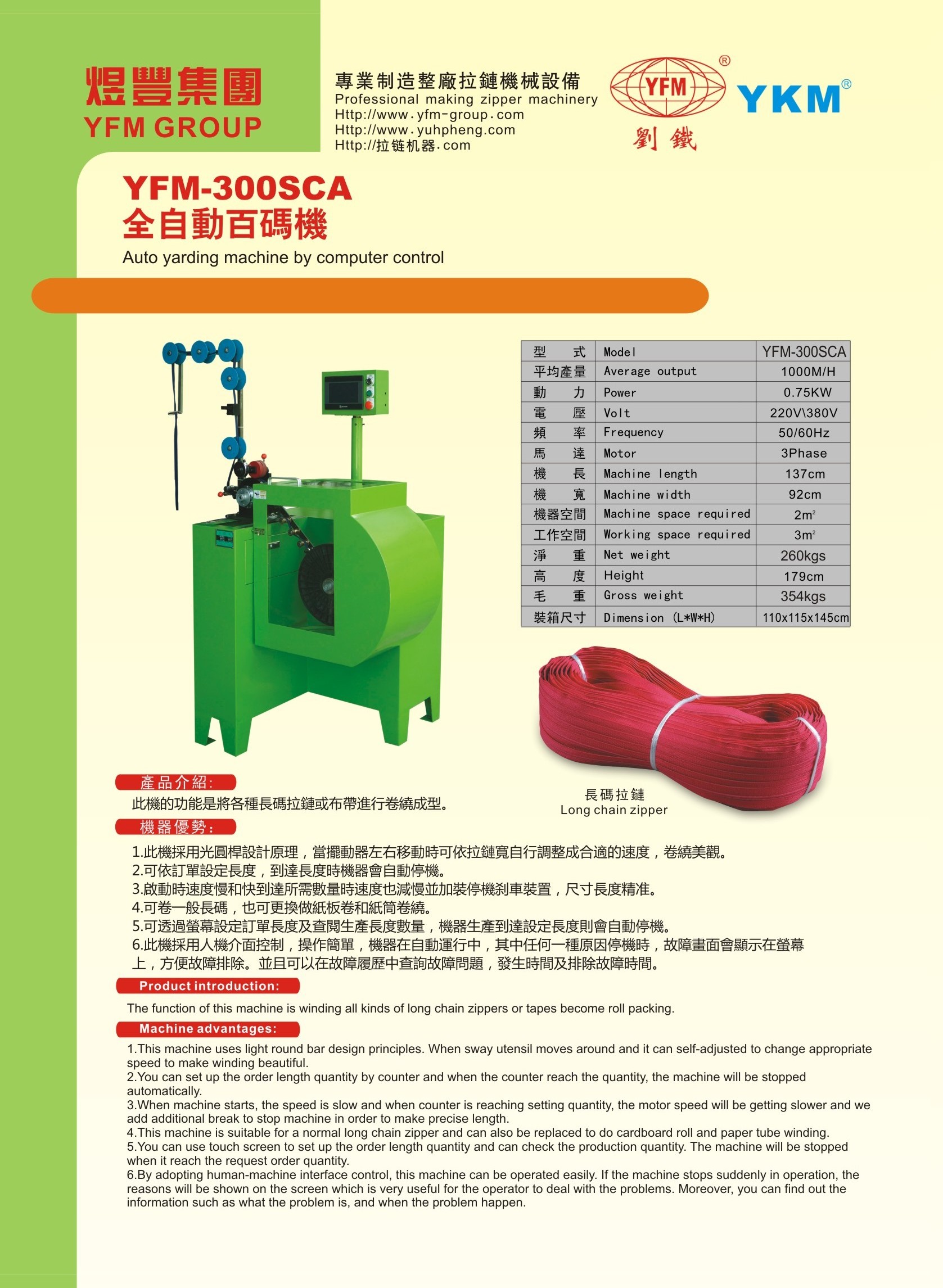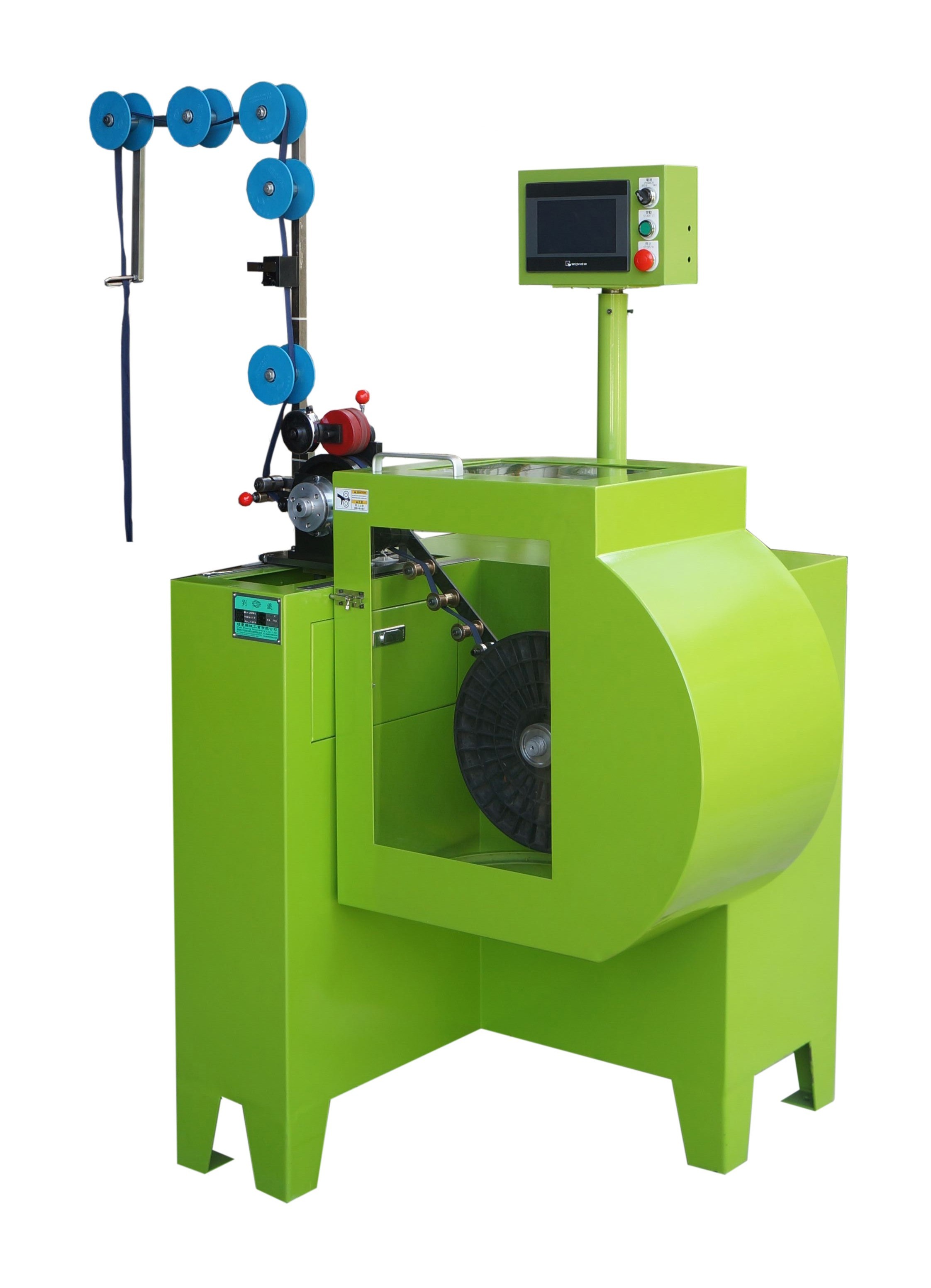 此機的功能是將各種長碼拉鏈或布帶進行卷繞成型。