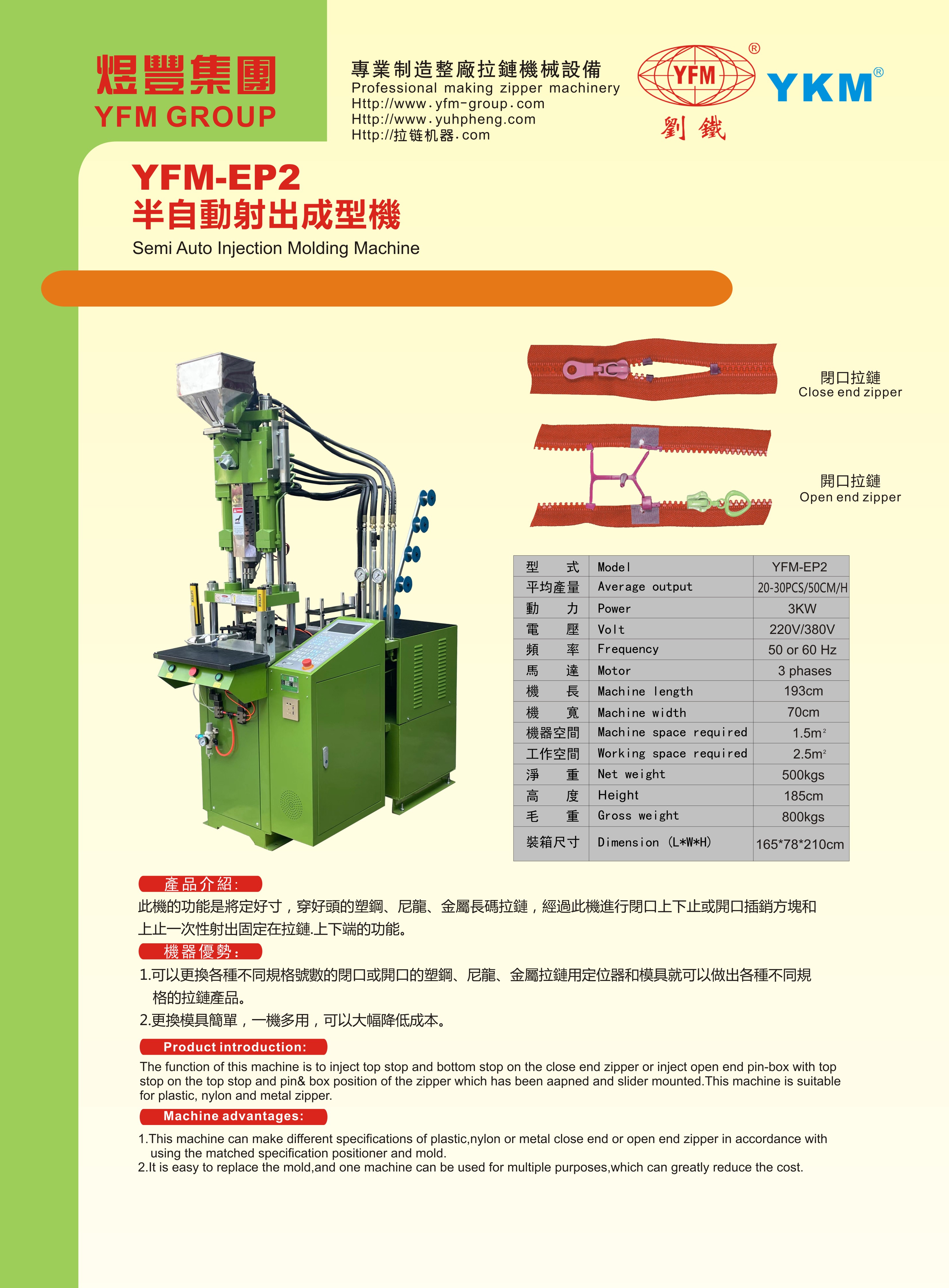 產(chǎn)品名稱:YFM-EP2 半自動尼龍開口射出成型機(jī)