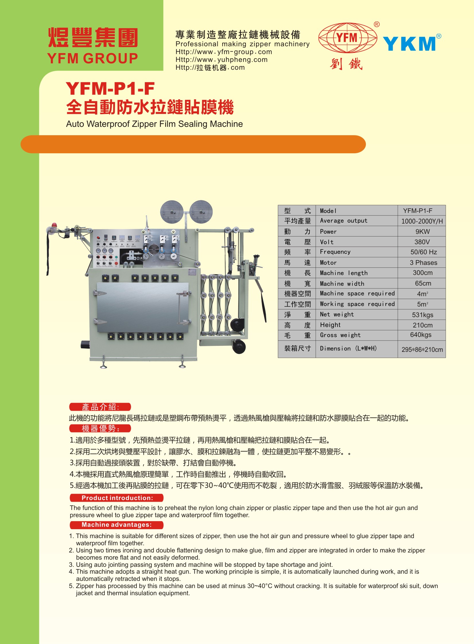 此機的功能是將尼龍長碼拉鏈或是塑鋼布帶預熱燙平,透過熱風槍與壓輪將拉鏈和防水膠膜貼合在一起的功能。