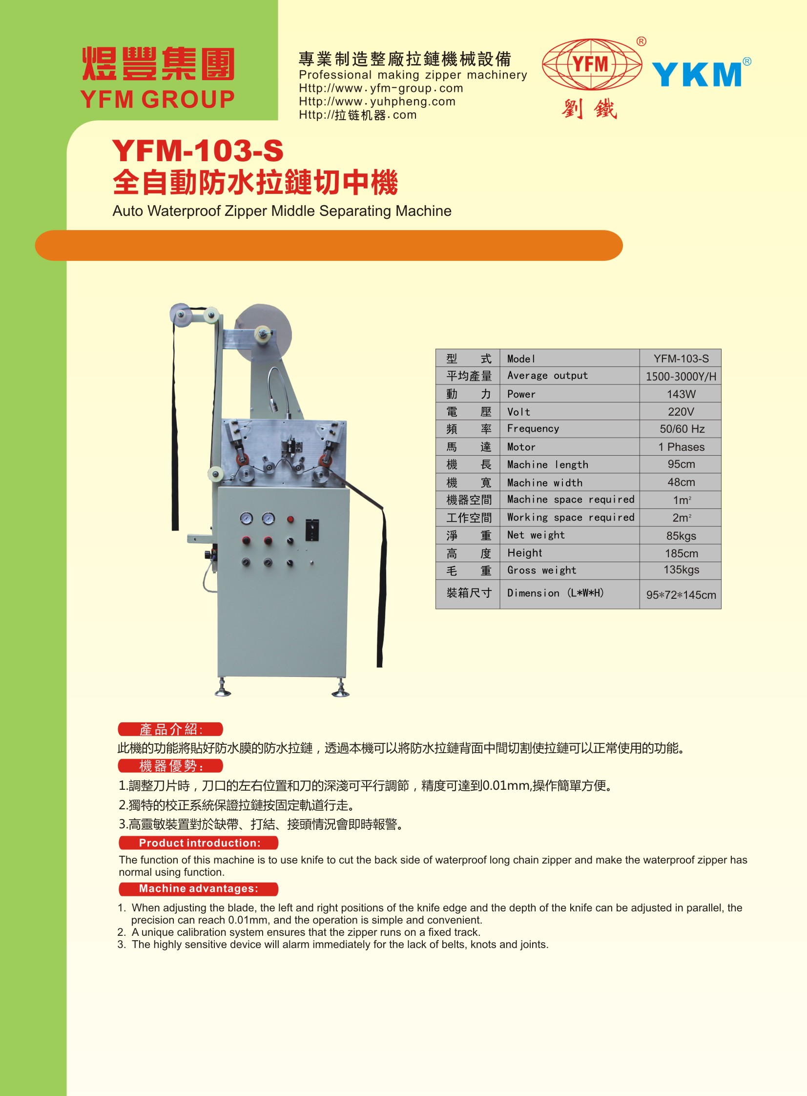 此機(jī)的功能是將貼好防水膜的防水拉鏈,透過(guò)本機(jī)可以將防水拉鏈背面中間切割 使拉鏈可以正常使用的功能。