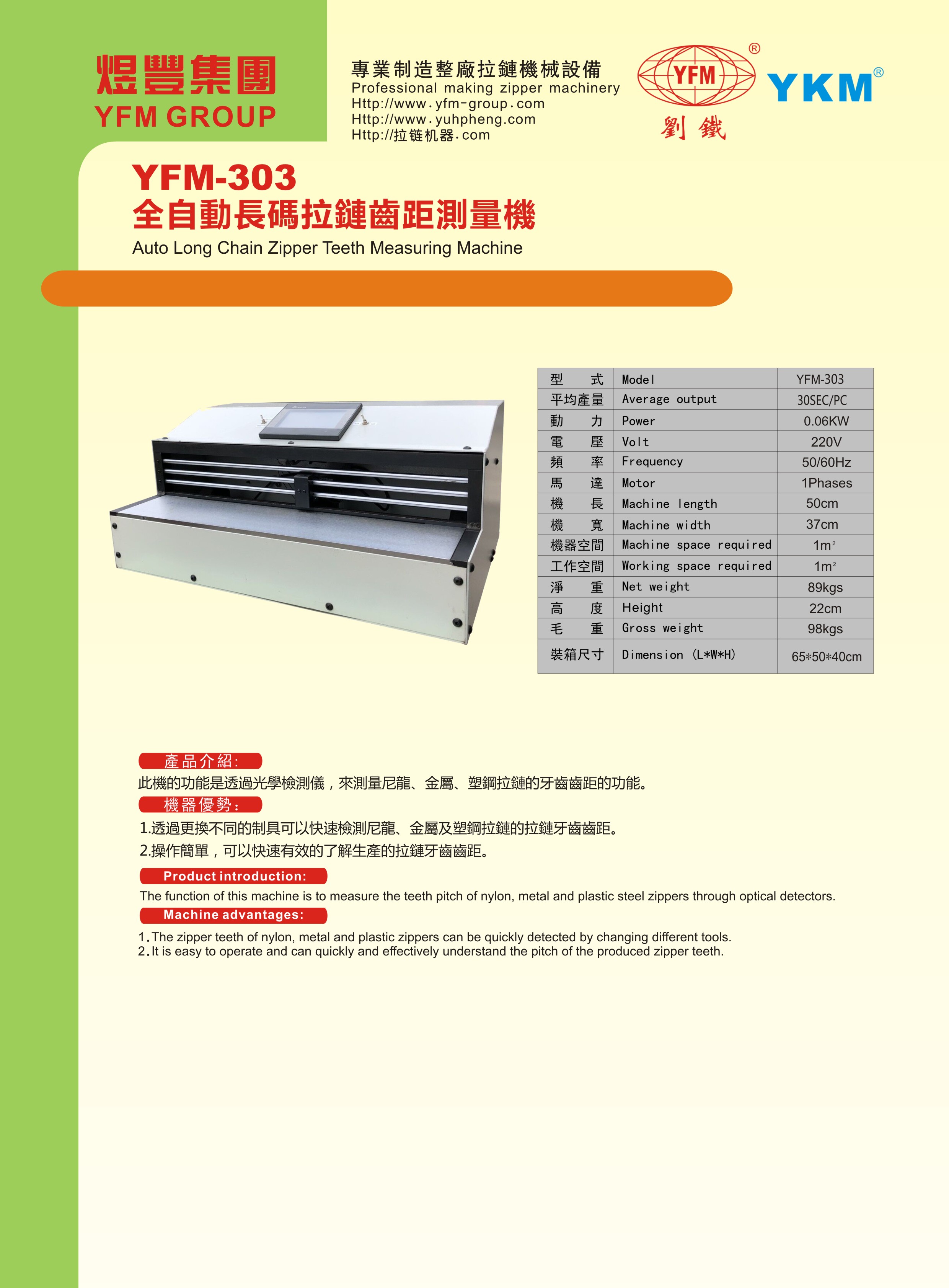 此機的功能是透過光學(xué)檢測儀,來測量尼龍、金屬、塑鋼拉鏈的牙齒齒距的功能。