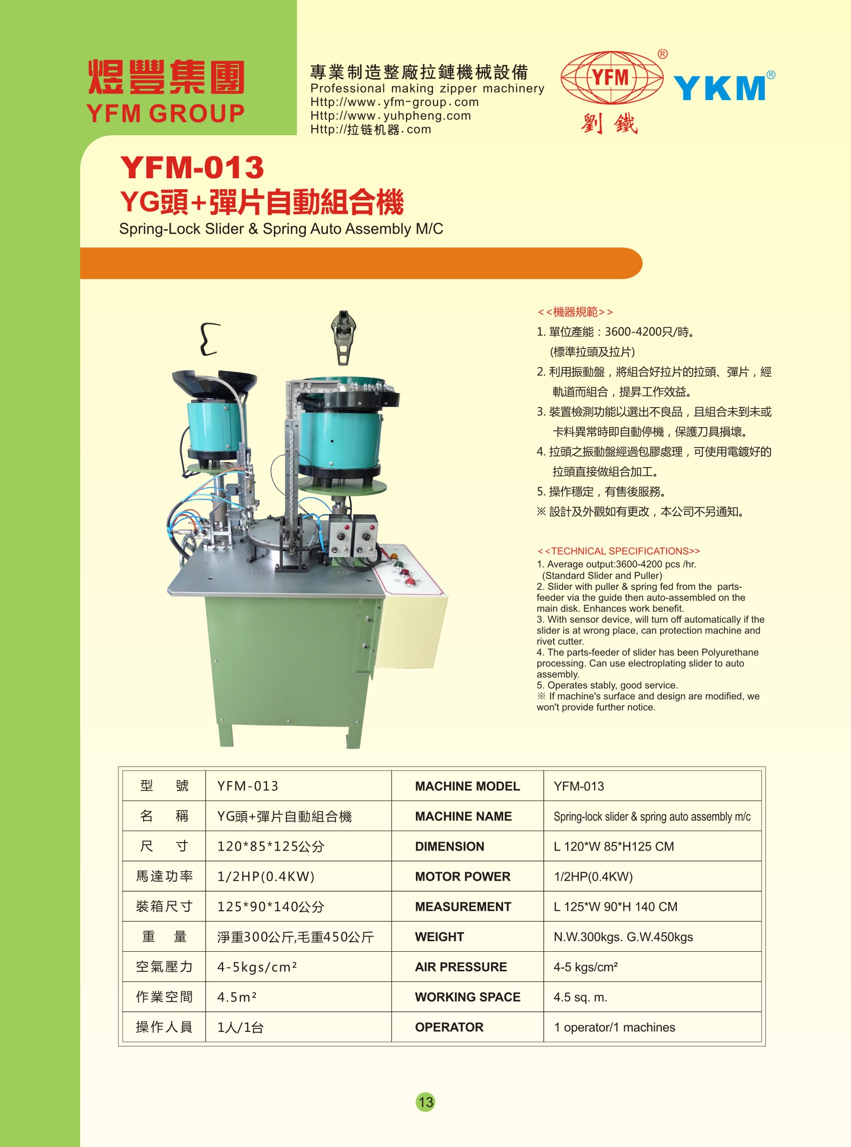 產(chǎn)品名稱:YFM-013 YG頭+彈片自動組合機