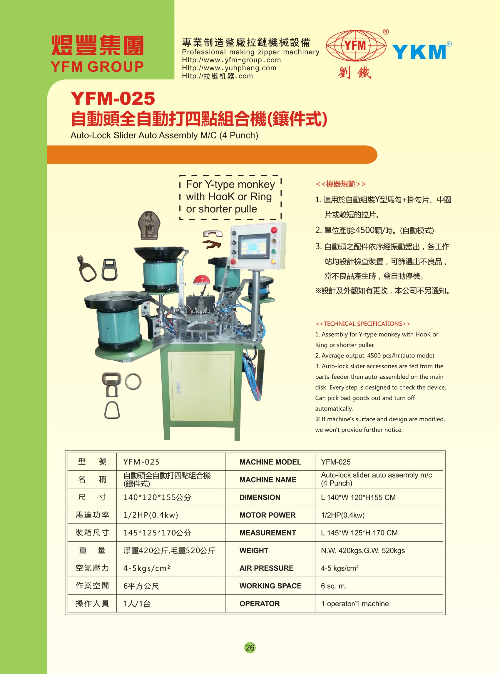 2、 適用於自動(dòng)組裝Y型馬勾+掛勾片、中圈片或較短的拉片。