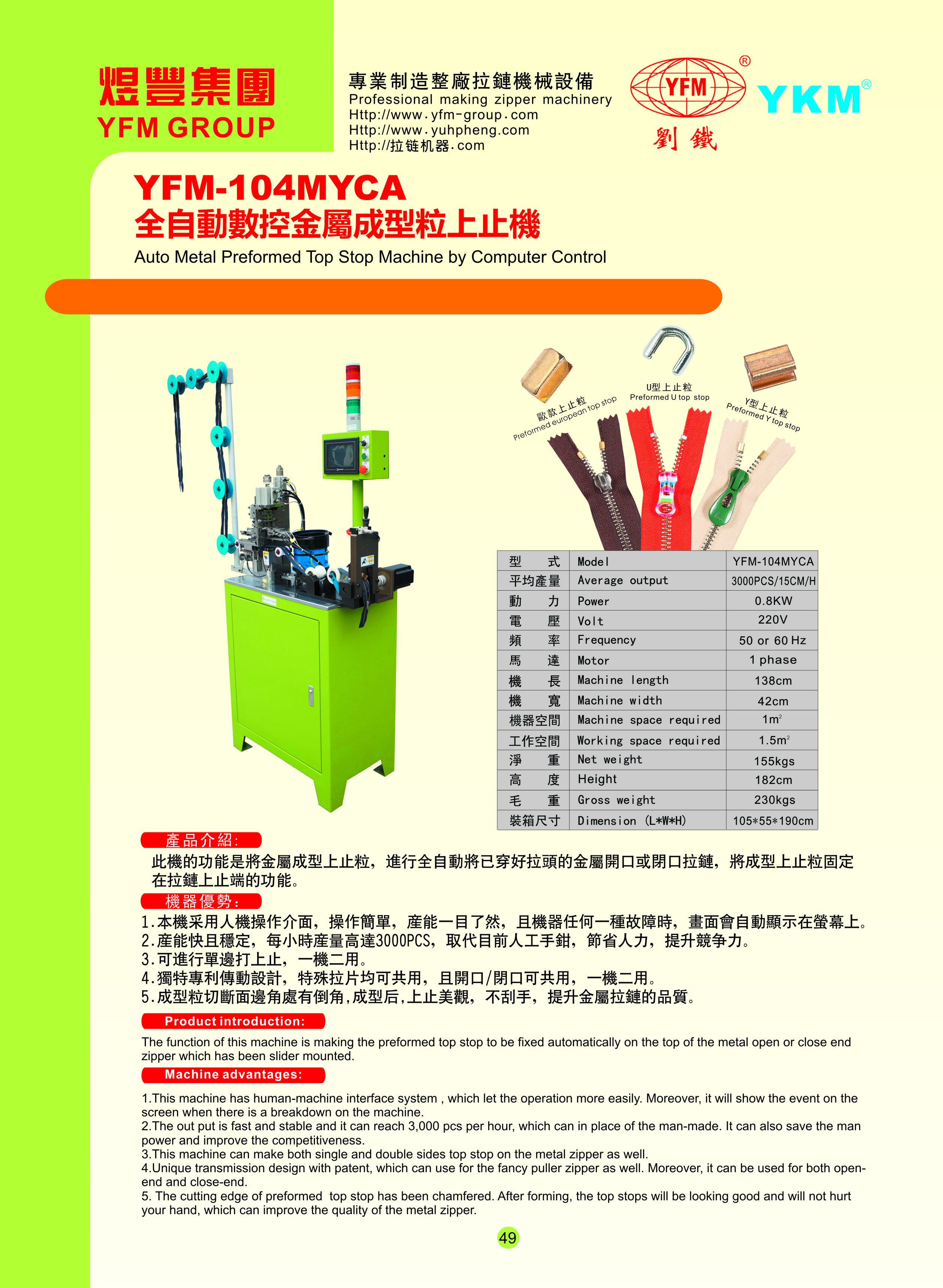 YFM-104MYCA Auto Metal Preformed Top Stop Machine by Computer Control