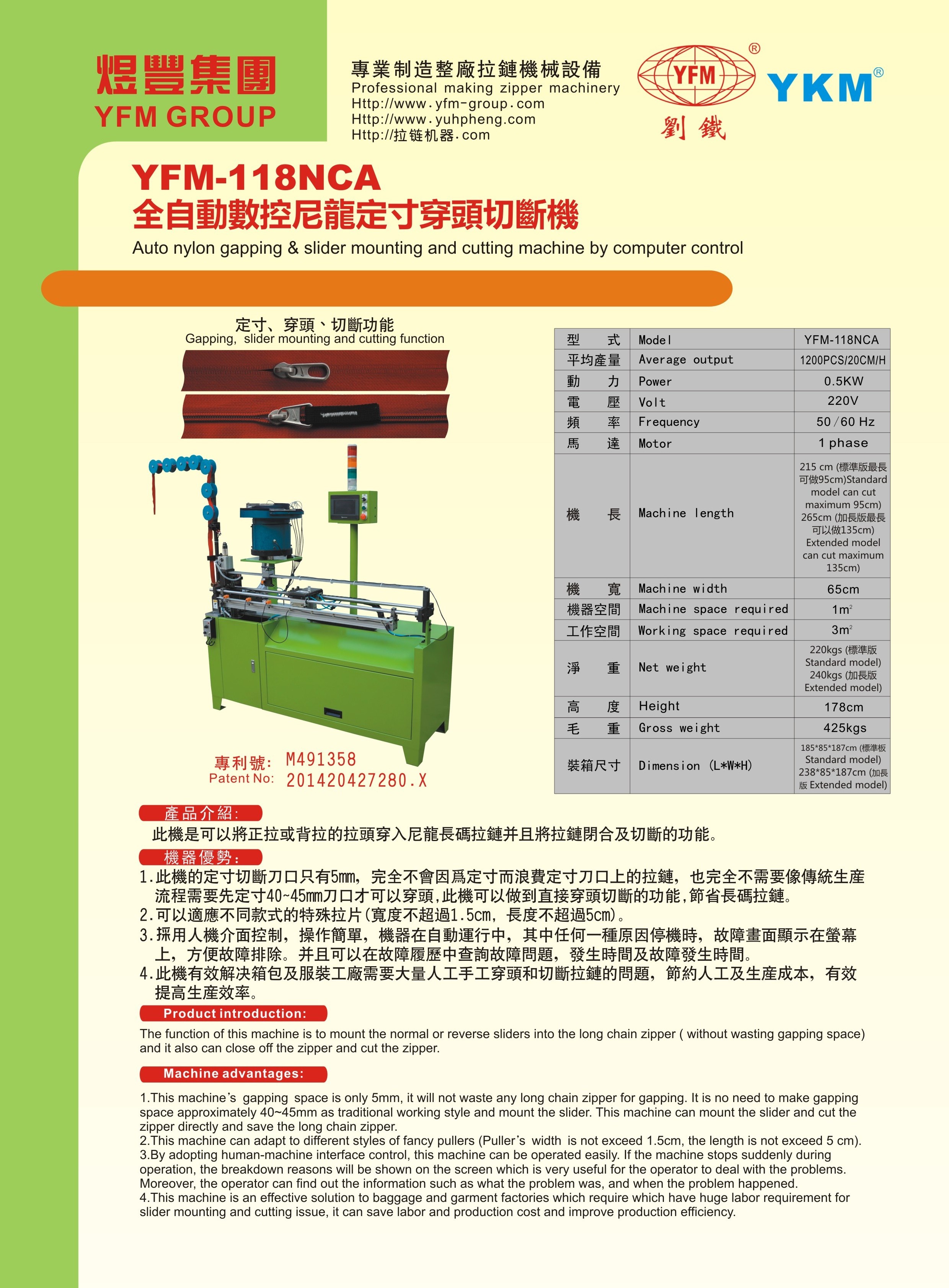 YFN-118NCA Auto nylon gapping & slider mounting and cutting machine by computer control