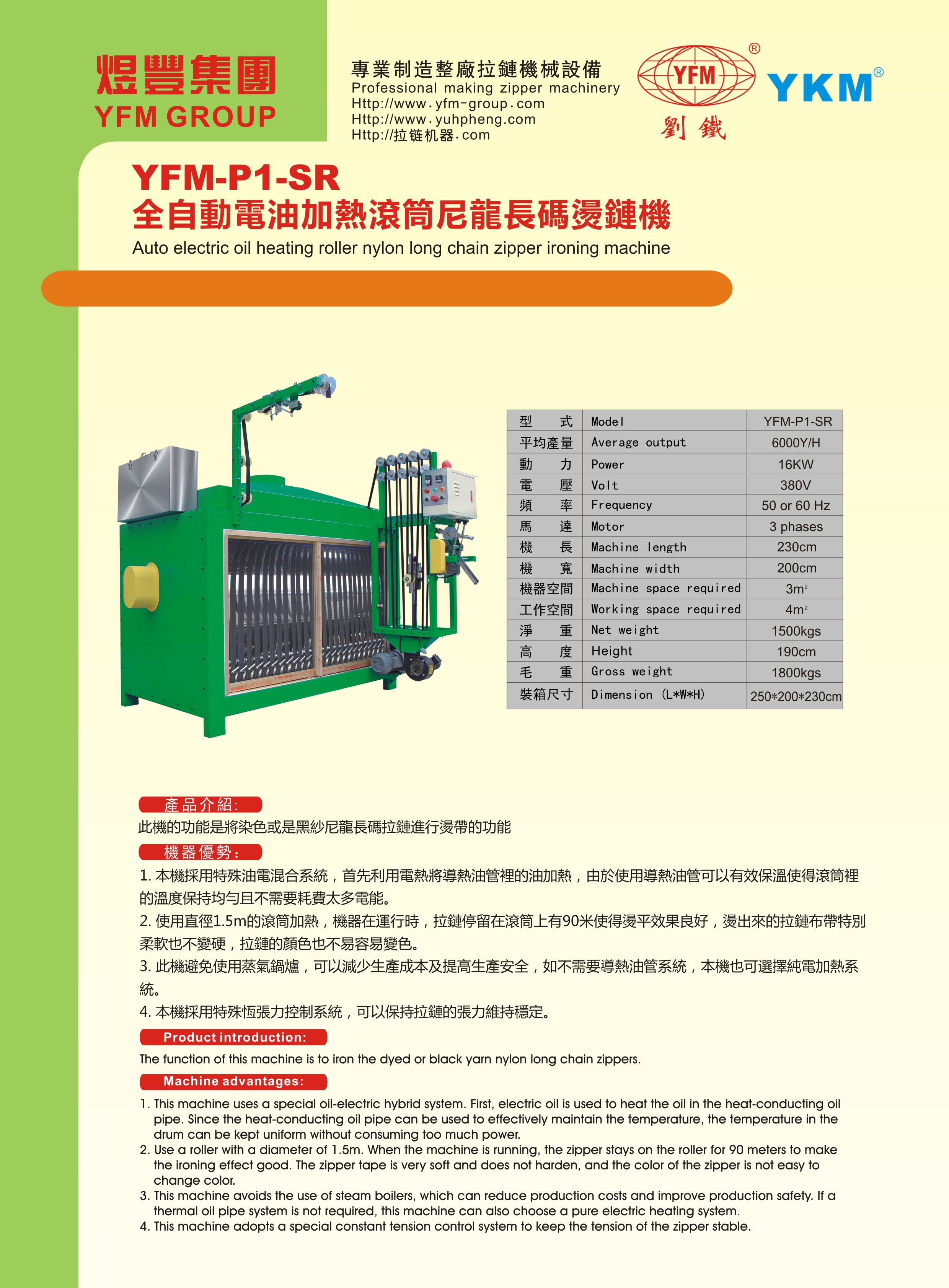 YFM-P1-SR Auto electric oil heating roller nylon long chain zipper ironing machine