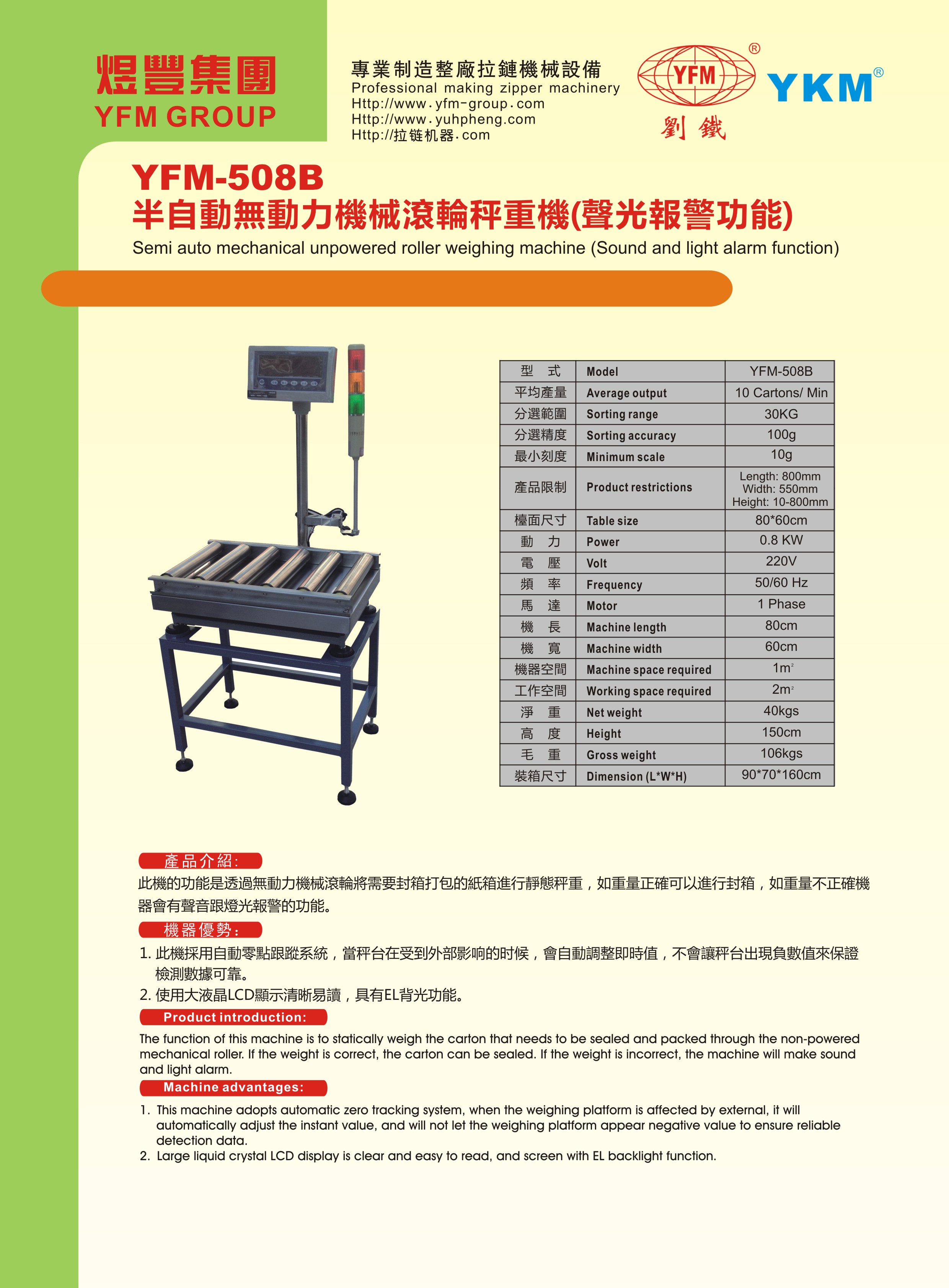 YFM-508A Auto power roller weighing machine (Sound and light alarm function)
