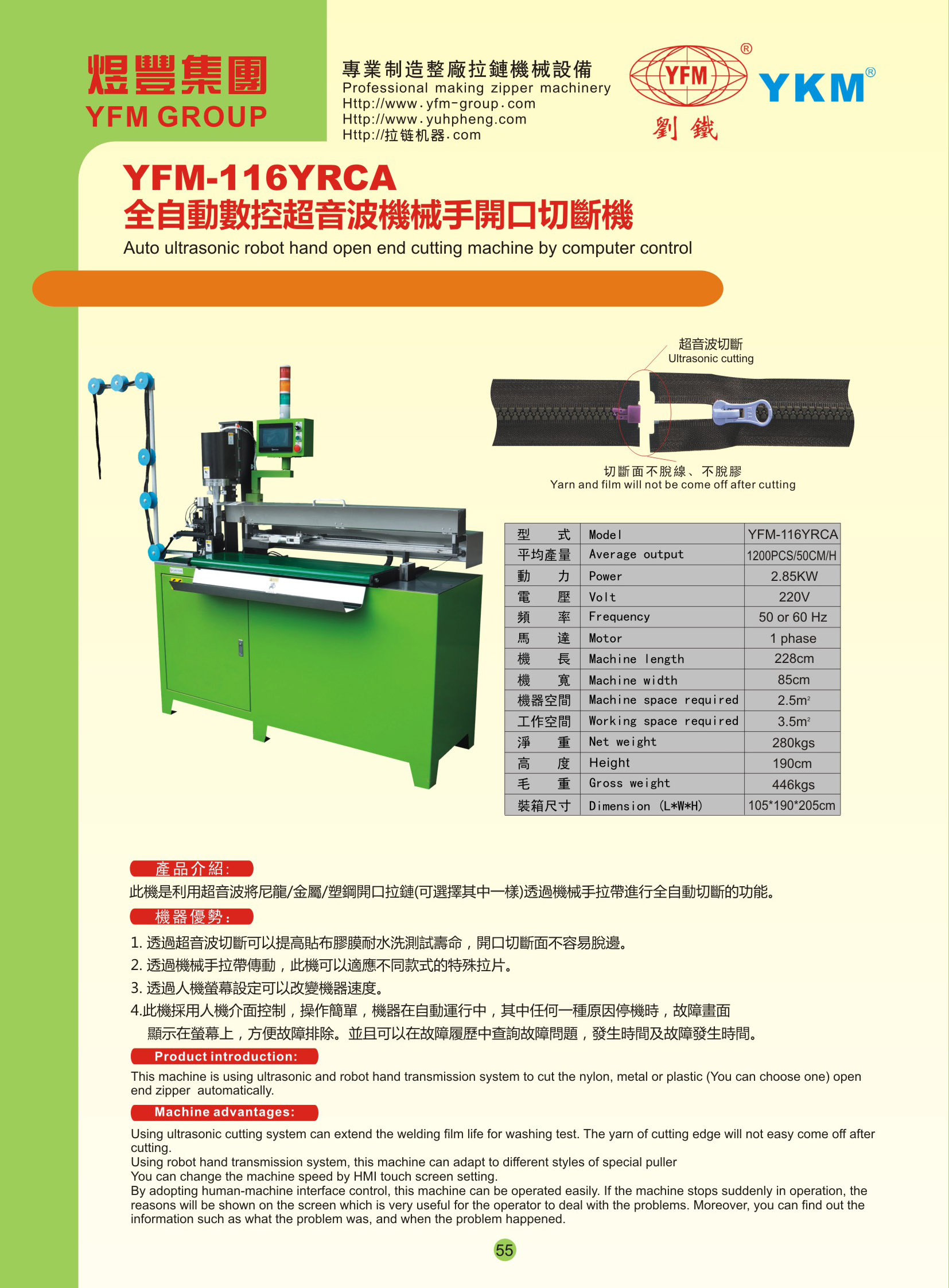 The main purpose of this article is to give a brief introduction to one of the new products —YFM-116YRCA Auto ultrasonic robot hand open end cutting machine by computer control.