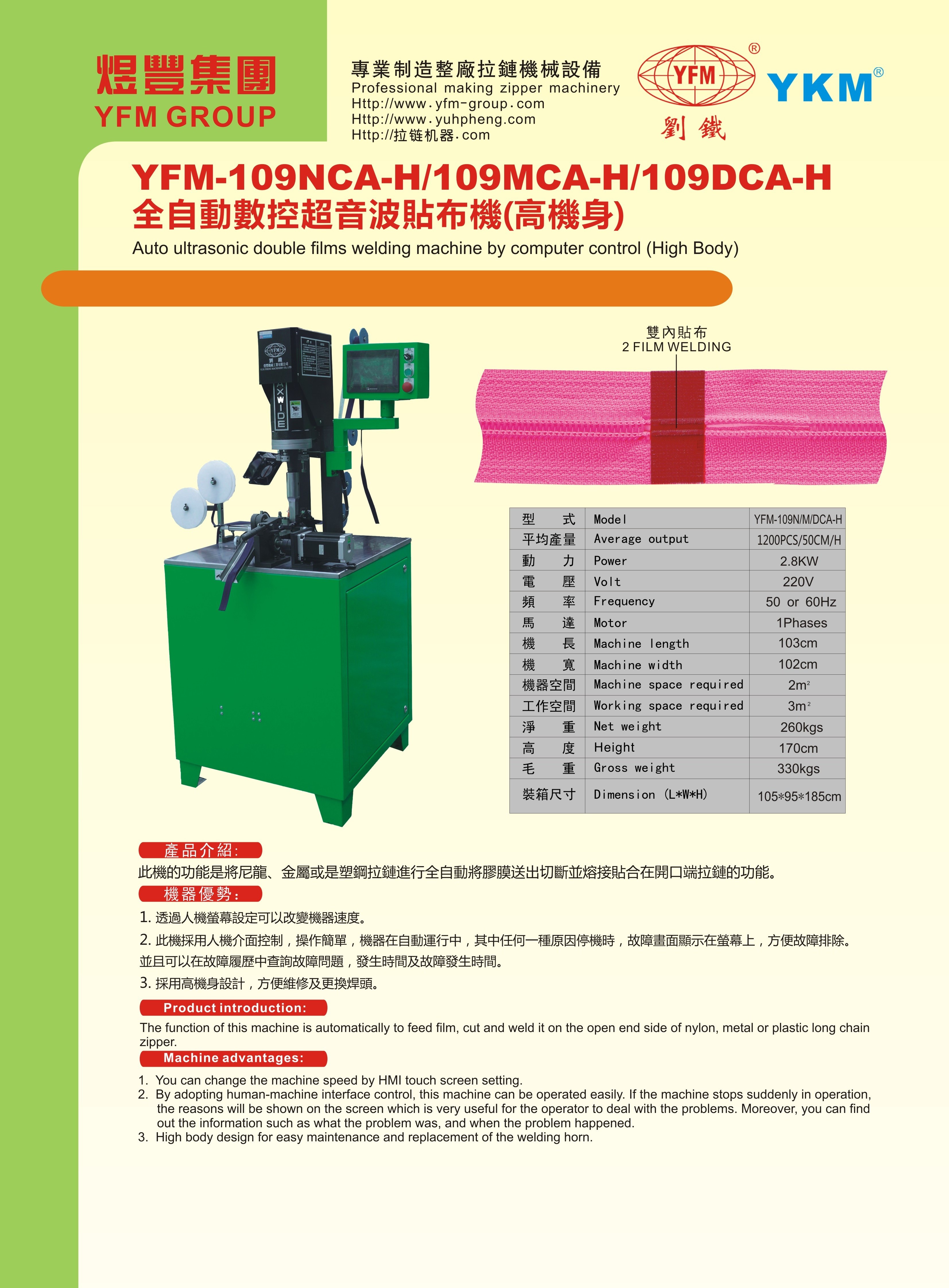 The function of this machine is automatically to feed film, cut and weld it on the open end side of nylon, metal or plastic long chain zipper.