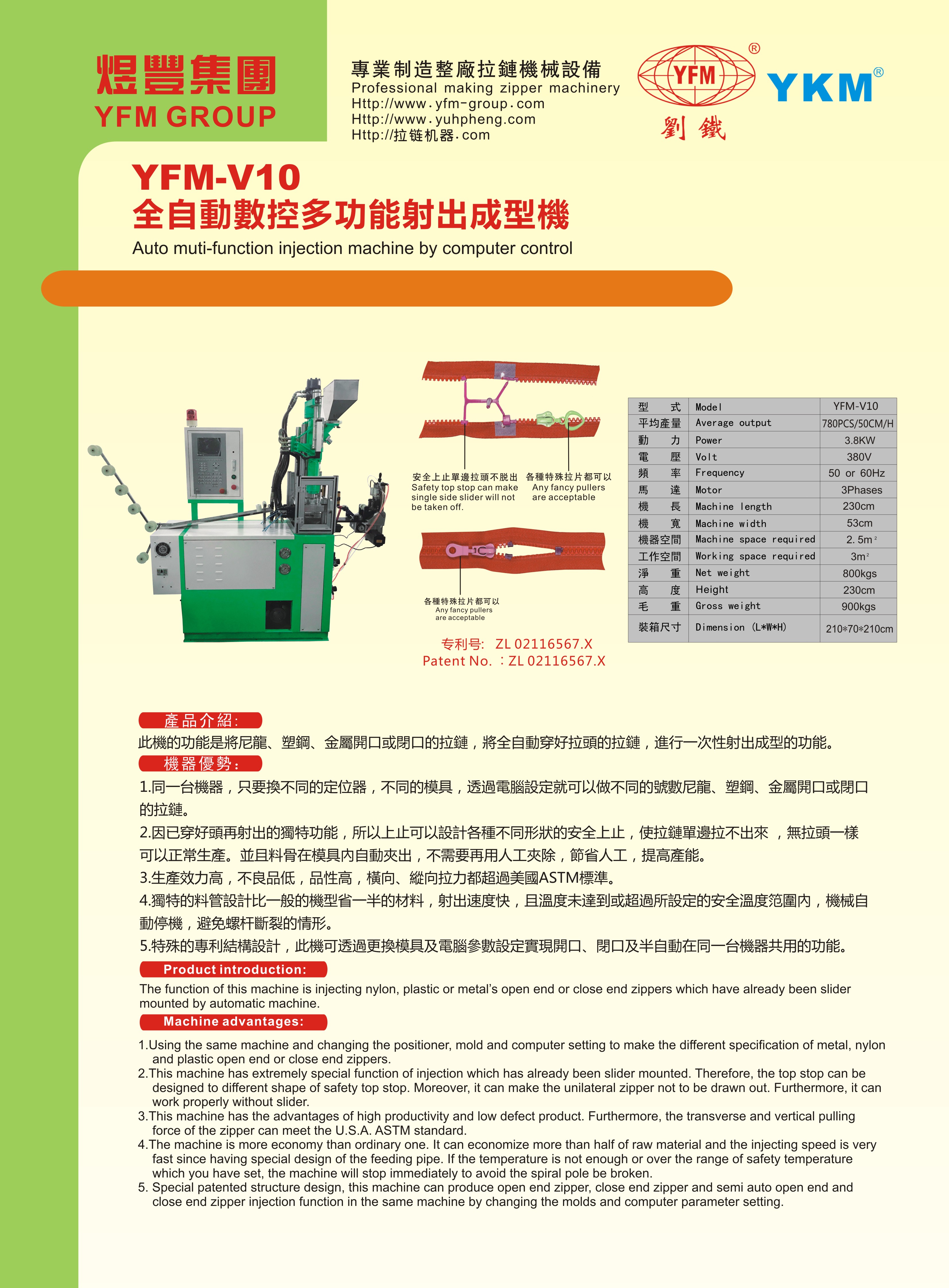 2. This machine has extremely special function of injection which has already been slider mounted. Therefore, the top stop can be designed to different shape of safety top stop. Moreover, it can make the unilateral zipper not to be drawn out. Furthermore, it can work properly without slider.