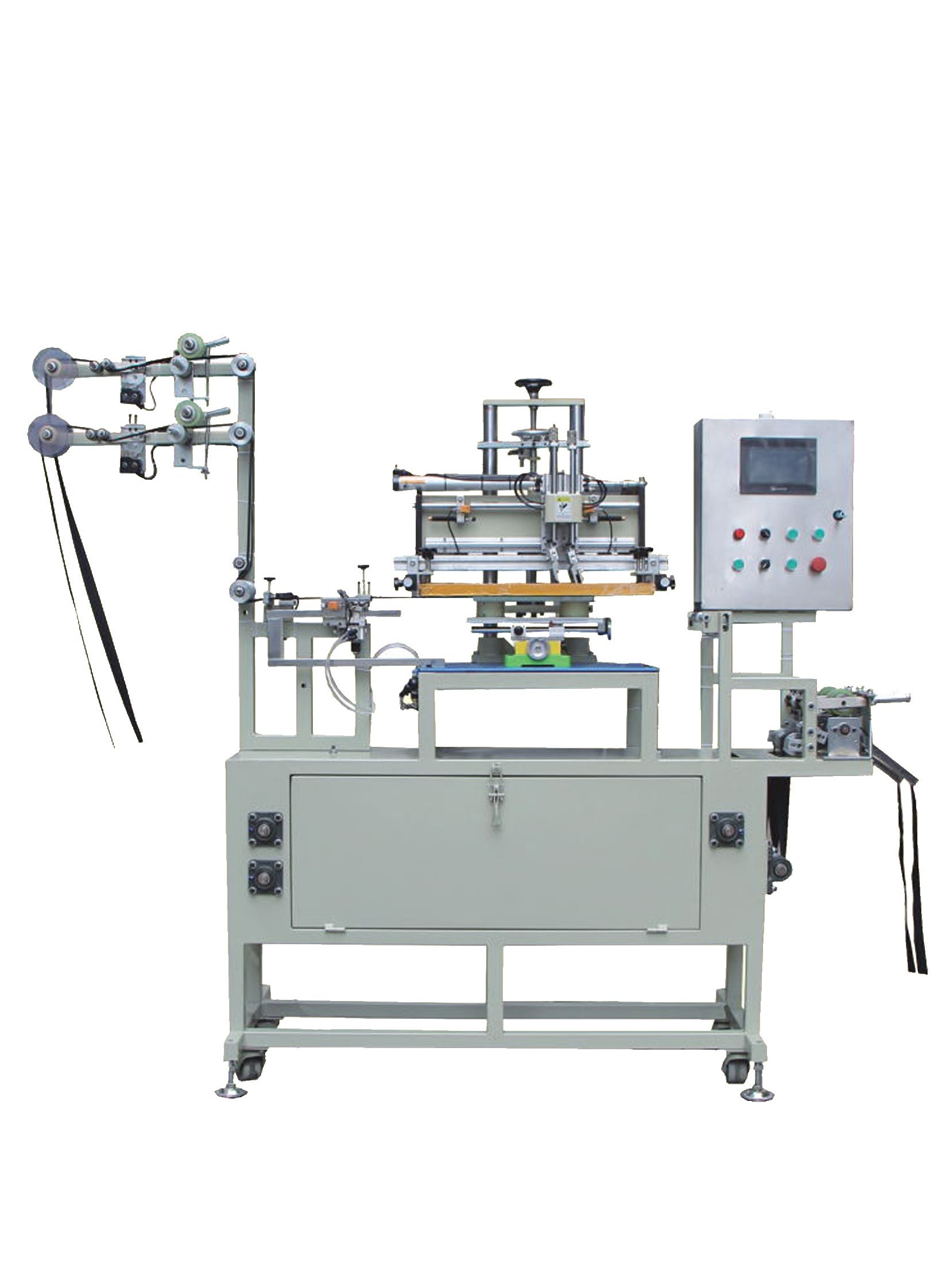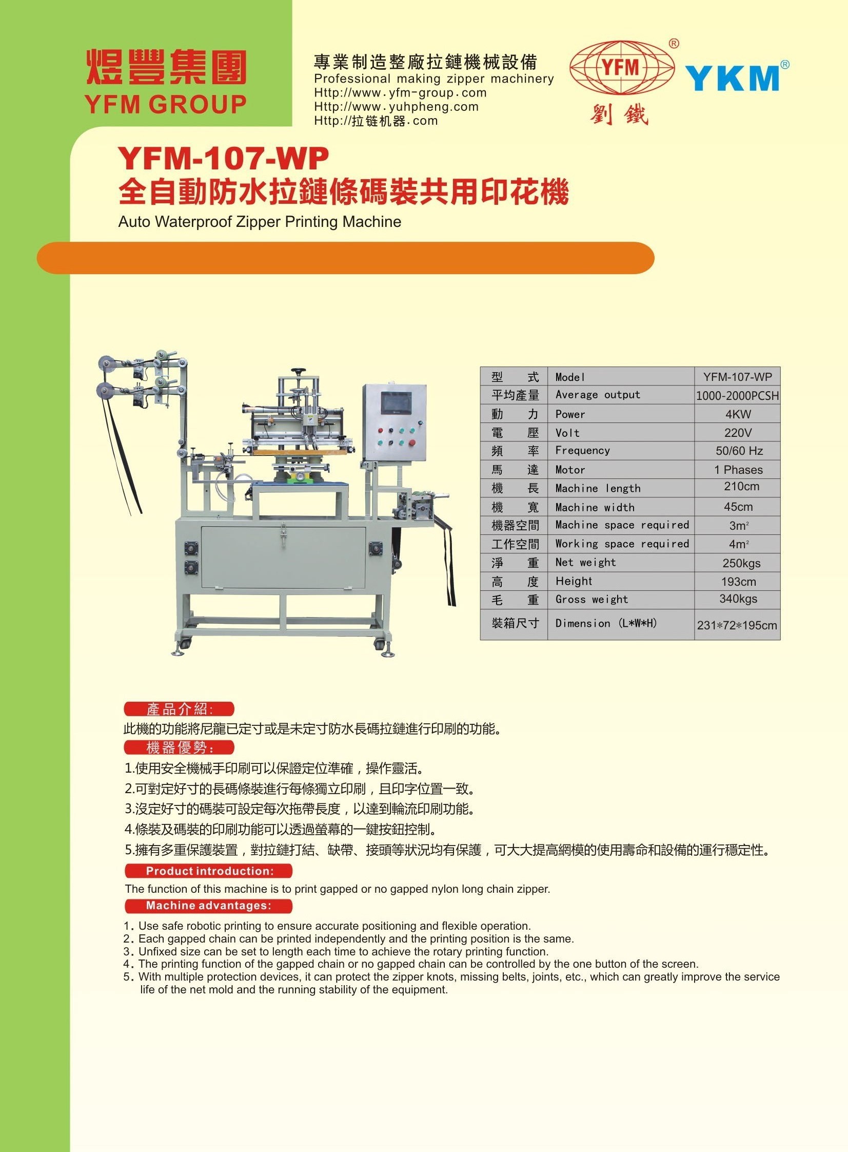 The function of this machine is to print gapped or no gapped nylon long chain zipper.